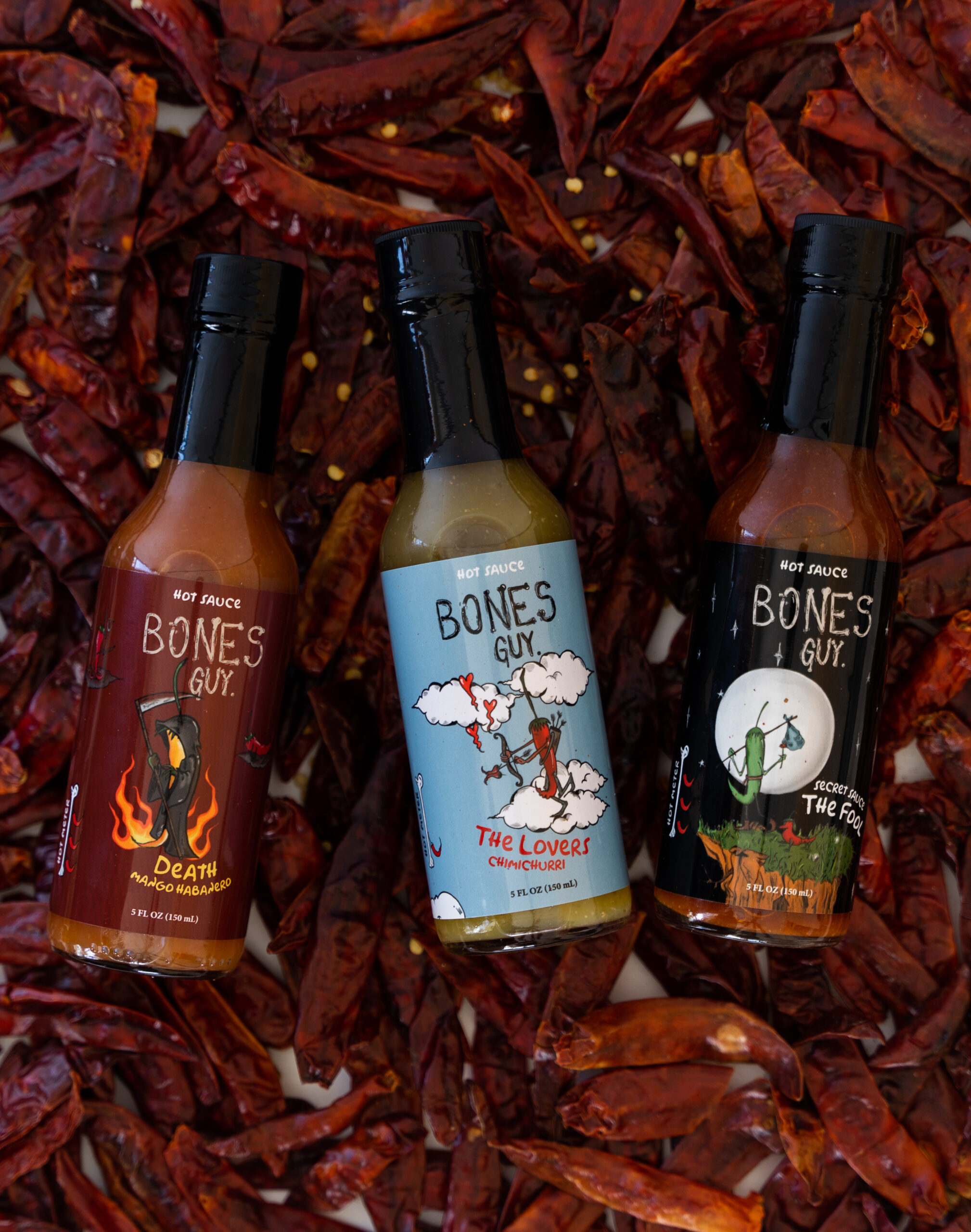 W Bones Guy Hot Sauces jesteśmy pasjonatami dostarczania wysokiej jakości pysznych i ostrych sosów. Dlatego uważamy, że ostre sosy powinny być nie tylko ostre, ale także aromatyczne. Aby to osiągnąć, nasze sosy są wytwarzane lokalnie w Key West na Florydzie, w małych partiach, starannie wybierając wyłącznie naturalne składniki, aby zapewnić, że każdy sos ma wyjątkowy i pyszny smak oraz zachować najwyższą jakość. I bądźmy szczerzy, kto nie lubi odrobiny pikantności w swoim życiu.